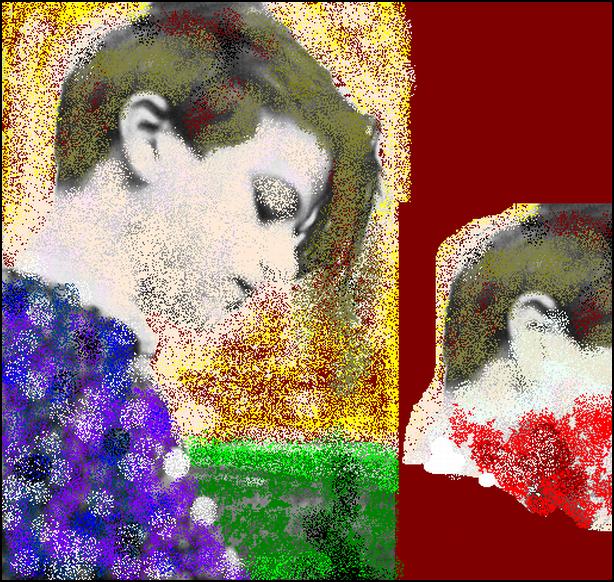 Hát az is. A vörös és barna kombináció nagyon kifejezően érzékelteti a tompa fejsze vagy a csorba kés munkáját.