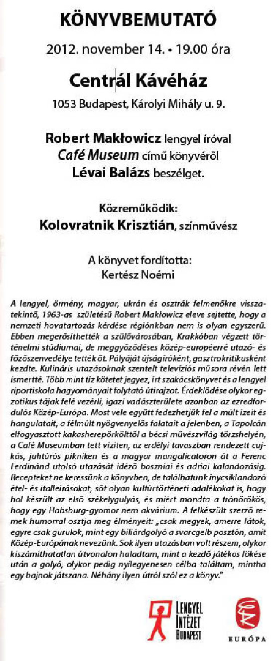 Ma: Kávéházi könyvbemutató