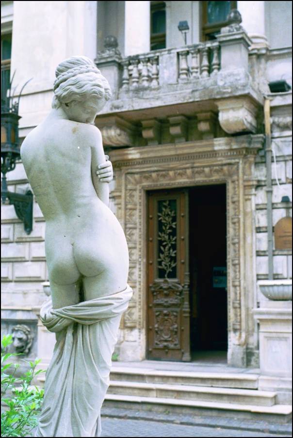 Ez a szobor egy bukaresti épület előtt áll, a híres-nevezetes Calea Victoriei-en. A fotó születésének időpontja az ezredforduló, eredetileg riportnak indult, de aztán zsánerkép lett belőle, s ma már talán a konkrétum se fontos, amihez az emlékezetet kapcsolja.