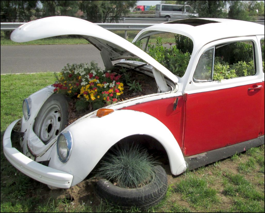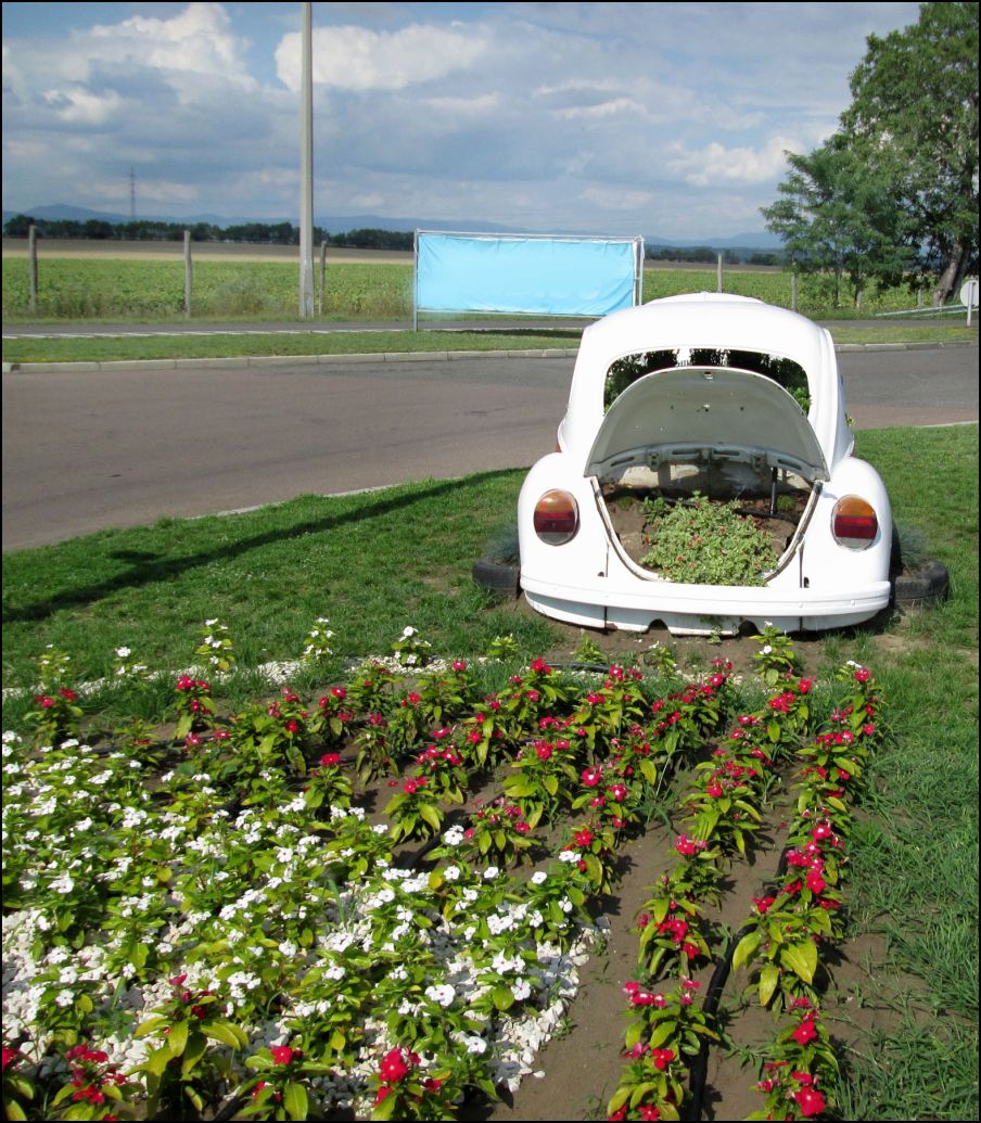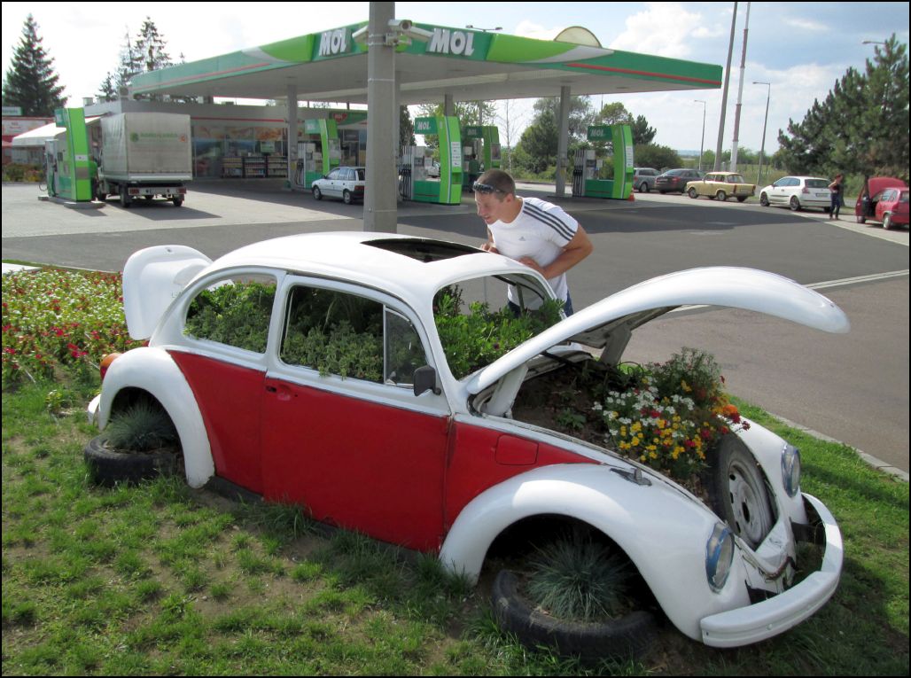Kerekharaszt (Heves m.) határában az M-3-as autópálya mellett, egy MOL üzemanyagtöltő állomás üzemeltetője egy kreatív hatvani virágkertészt kért fel, hogy egy régi kiszuperált VW „bogár” karosszériára alapozva, látvány virágágyast hozzon létre, melyhez automata öntözőberendezést is csatlakoztattak. A „bogaras” virágágyast az úton lévők már messziről láthatják, sokakat „leterel” egy emlékkép készítésére, vagy ha már itt vannak, tankolnak és a büfében is fogyasztanak is.