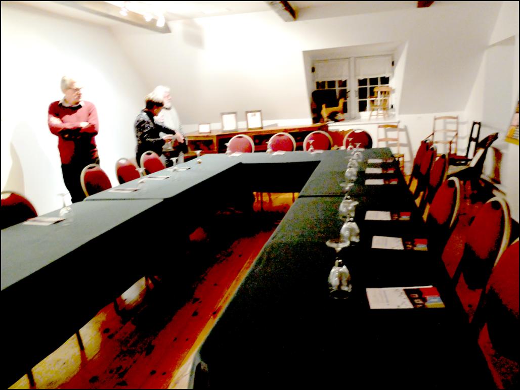 A kiállító művészek asztala a Trestler galériában. Irinának és nekem volt egy-egy fenntartott székünk. PP (2015. január 15.)