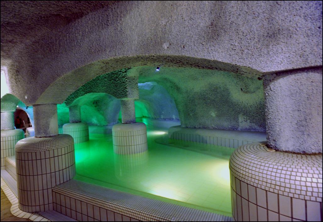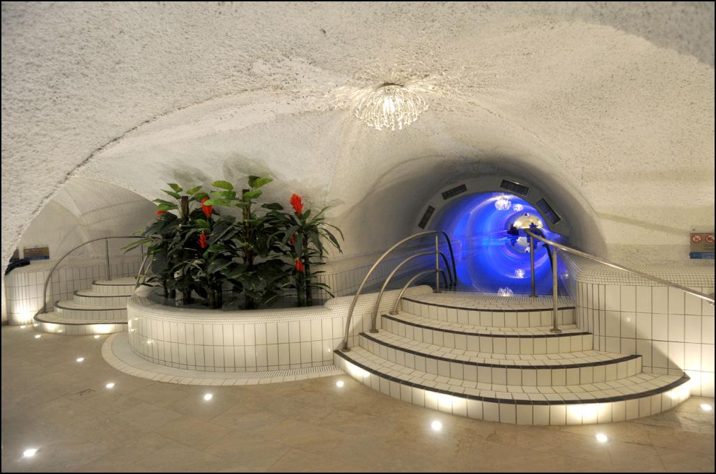 A 760 méternyi barlangrendszerben, a „hegybe süllyesztett” 24 méter átmérőjű csúszda toronyról 25 méter mélységbe lehet lejutni, a 550 méter hosszú csúszdán. Közép-Európa legnagyobb Barlangfürdőjében, a különféle medencékkel, egy elvarázsolt, földalatti vízi világot valósítottak meg uniós támogatással.
