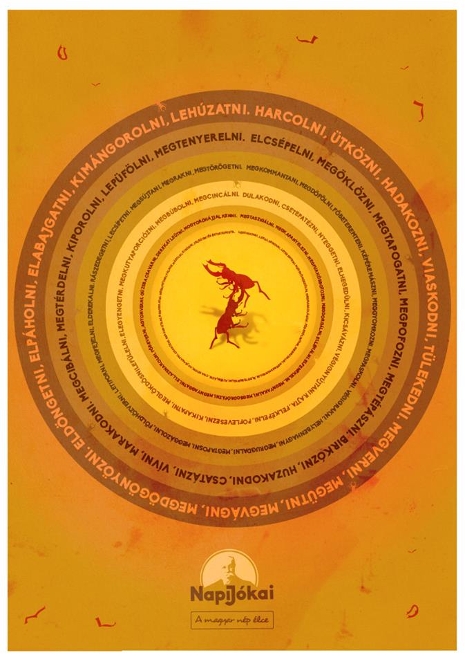 Meggázolni, földhözverni, letiporni, megfejelni, elderekalni. Rászedegetni, lecsípetni, megsújtani, megrakni, megtörögetni. Dulakodni, csetepatézni, nyeggetni, elhegedülni, kicsávázni. Végignyújtani rajta, felképelni, poflevesezni, kikapatni, meglökdösni. Lefülelni, elegyengetni, megkutyaporciózni, megbúbolni, megcincálni. Megtaszigálni, megkapanyelezni, megfurkósbotozni, megdorgálni, elléhálni. Elfenekelni, megnyakalni, megsodrófázni, megnyaggatni, ellazsnakolni. Főbeverni, agyonverni, gúzsba csavarni, derekát leütni, mogyoróhájjal kenni. Lesuhintani, lekalabintani, leteremteni, meggyömöszölni, megmarkolászni. Főbekólintani, kiebrudalni, megnáspángolni, elegyebugyálni, kitéglázni. Civakodni, hajbakapni, odasózni, besavanyítani, megugratni. Megaprítani, falhoz mázolni, kirúgni, felrúgni és értekezni stb.” /A magyar nép élce – 100 magyar szó a verekedésre/