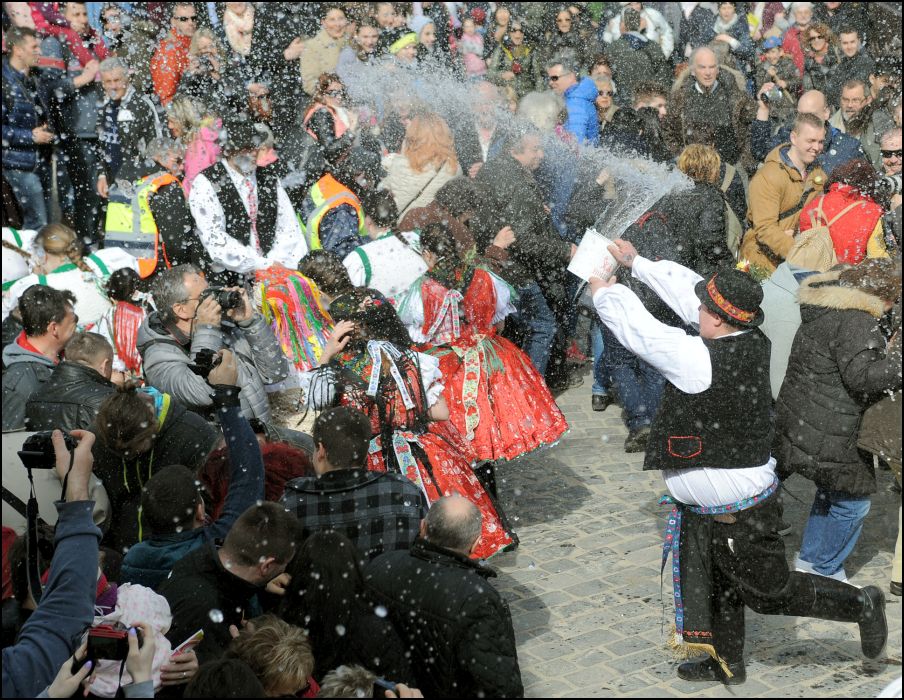 A Szent Márton templomnál ünnepi szentmisére, ételszentelésre került sor, majd a hívők, színes népviseletes húsvéti körmenetéhez az idelátogatók is csatlakoztak. Ezután kezdődött el a hagyományok és az életöröm ünnepe. A megelevenedett népszokások látványossága volt, az artézi vízzel telt vödrökből való locsolkodás, melyről a hollókői legények gondoskodtak.