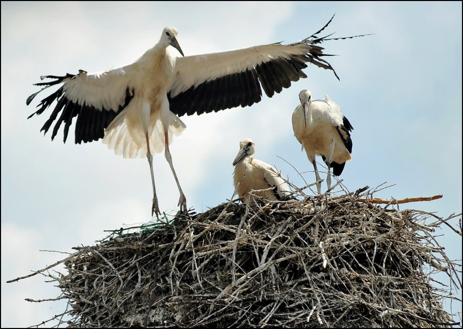 Repüléslecke egy borsi gólyafészekben, 2016 augusztusában