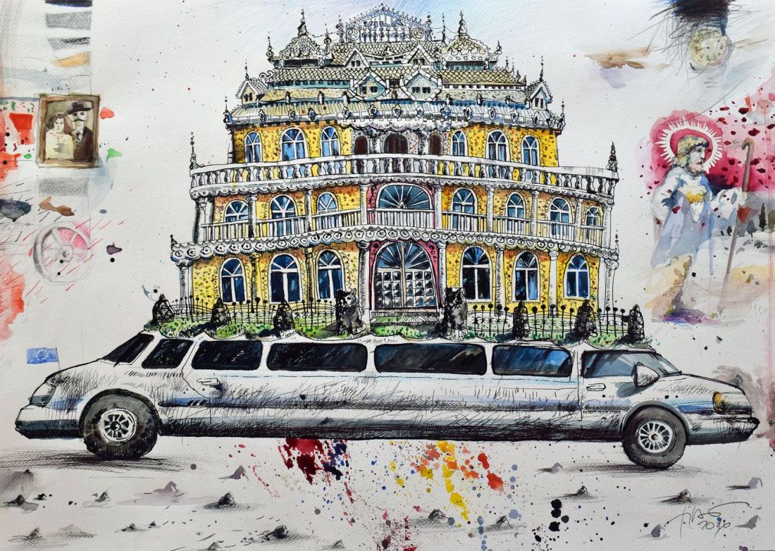 Említettem már az alkotón átszűrődő groteszk, szatirikus látásmódot: aki erre még inkább kíváncsi, az hosszasan tanulmányozza végig Siklódy Ferenc színes és részleteiben ugyancsak aprólékosan kidolgozott grafikáját, amelyben a környező világunk elemei mintha egy görbe tükörben sorakoznának fel…