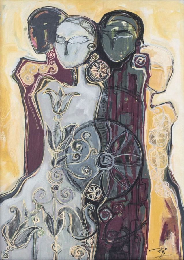 Keresztes Györgyi két munkájában az együttélés emberi vonatkozásait veszi szemügyre: az egyikben az elmosódó arctalanság utal az egyéniség lebontásának, lebomlásának és kommunikáció képtelenségének a veszélyeire, a másikon pedig éppen a sokféleségben találja meg a közös emberi jellemzőket.