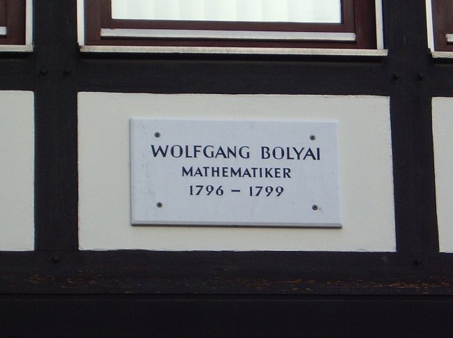 Bolyai Farkas táblája – német keresztnévvel – régi lakóhelyének falán őrzi „göttingai” tartózkodásának emlékét.