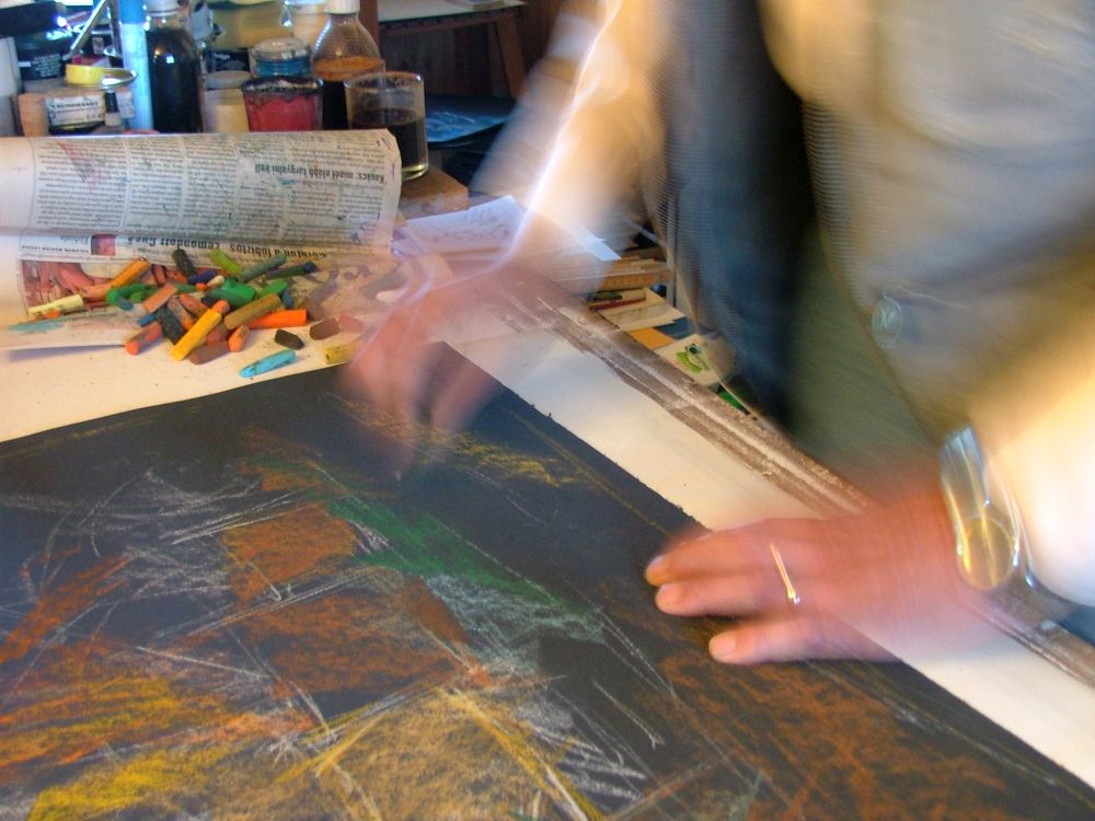 Most már egy óriási műteremben, fényözönben dolgozik gondtalanul, mindig vidáman mint gyermekkorunkban a tulpános palotában.